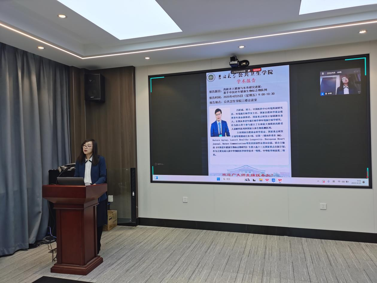 4月25日,中国疾病预防控制中心环境所环境流行病学室主任吕跃斌副研究员应邀来院交流,作题为"高龄老人健康与长寿研究进展:基于中国老年健康生物标志物队列"的学术报告。报告由365英国上市集团副经理王娟教授主持,公司相关学科师生参与学术活动。