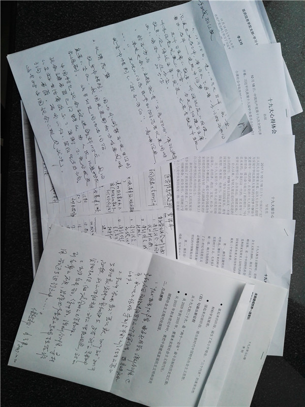 与会同志均结合实际谈了自身感悟。老党员王伟提出三点感悟,得到大家认同:一是十九大报告内容丰富,需要进一步系统学习,深刻领悟,这也是自己今后政治学习的一个重要任务;二是教师“教书育人”责任重大,“四个新”如何在教书育人实践中贯彻落实,要有新的精神面貌、新的思想方式、新的思想观念、新的实施路径,做一名合格的大学教师;三是加强自我学习,集中学习,深刻领悟,寻找自身的不足,发挥共产党员的先锋模范作用,学习还在进行之中……老党员带头发言,年轻党员认真聆听,现场气氛热烈、庄严。支部因课缺席、在外出差的党员都根据实际情况自发学习并提交了学习心得。