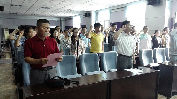 为了弘扬和传承中国共产党的精神,为党组织增添新鲜血液,2015年7月1日公司举行了庆祝建党94周年暨预备党员入党仪式。365英国上市集团党委书记钟绍峰、副书记兼副经理刘丽、员工工作办公室主任吴晓辉,团委书记苏国范、党务秘书曲超、院工会主席胡志宏老师以及41名新党员参加了此次大会。会议由副书记兼副经理刘丽主持。 入党宣誓仪式在庄严的《国际歌》中拉开帷幕。首先由副书记兼副经理刘丽宣读41位入党同学名单并对他们表示祝贺。随后,在老党员胡老师的带领下,41名预备党员举起右拳,面对鲜红的党旗齐声宣读入党誓词,向党组织做出了庄严宣誓。12级董雪洁同学代表新党员进行了发言。她发达了此时激动的心情,并感谢党组织与老党员的热切关怀,表明要认真学习党章,积极向党组织靠拢,充分发挥党员的模范作用,努力成为合格的中国特色社会主义事业的建设者和接班人。最后,党委书记钟绍峰发表讲话,指出入党宣誓仪式是加入党组织的重要环节,也是对新老党员一次深刻的党性教育,同时也是对建党94周年的纪念。鼓励党员特别是新党员要回顾历史,学习东北抗联精神,并提出坚定信念、牢记宗旨;遵守纪律、树立形象;加强学习、增强本领这三点想法,同时表达了对新党员的希望,最后,赢来了同学们阵阵掌声。 此次宣誓仪式,旨在培养优秀的党员,为党组织带来更有活力的新因子,为公司员工树立榜样,让更多的青年员工积极向党组织靠拢,在党的带领下不断前进,为我们国家建设做出贡献。