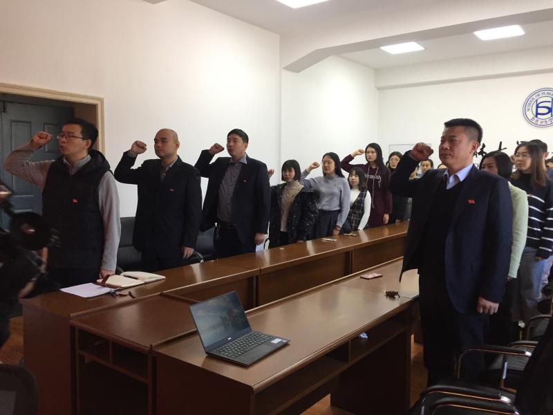 宣誓仪式在庄严的《国际歌》中拉开序幕,刘丽副书记宣读了新党员名单。随后员工工作办公室主任苏国范领誓,19名新党员面向党旗、举起右手,庄严向党旗宣誓,表达对党的忠诚和决心,参会老党员也与新党员一同重温入党誓词,忆念入党初心。宣誓结束后,新教师党员代表杨书满同志、新员工党员代表刘嘉悦以及老党员代表分别结合自身工作和学习进行发言,做出承诺,提出期许,互勉互励,不仅表达了自己对党的热情与忠贞,更是提出了高标准高要求,要为之奋斗。