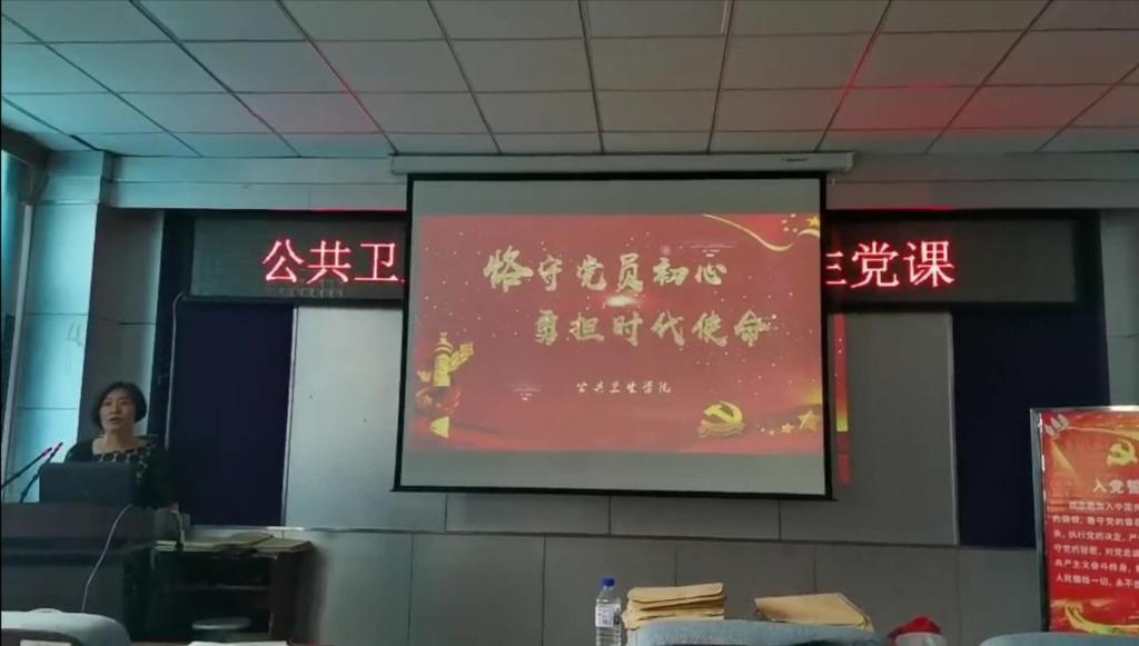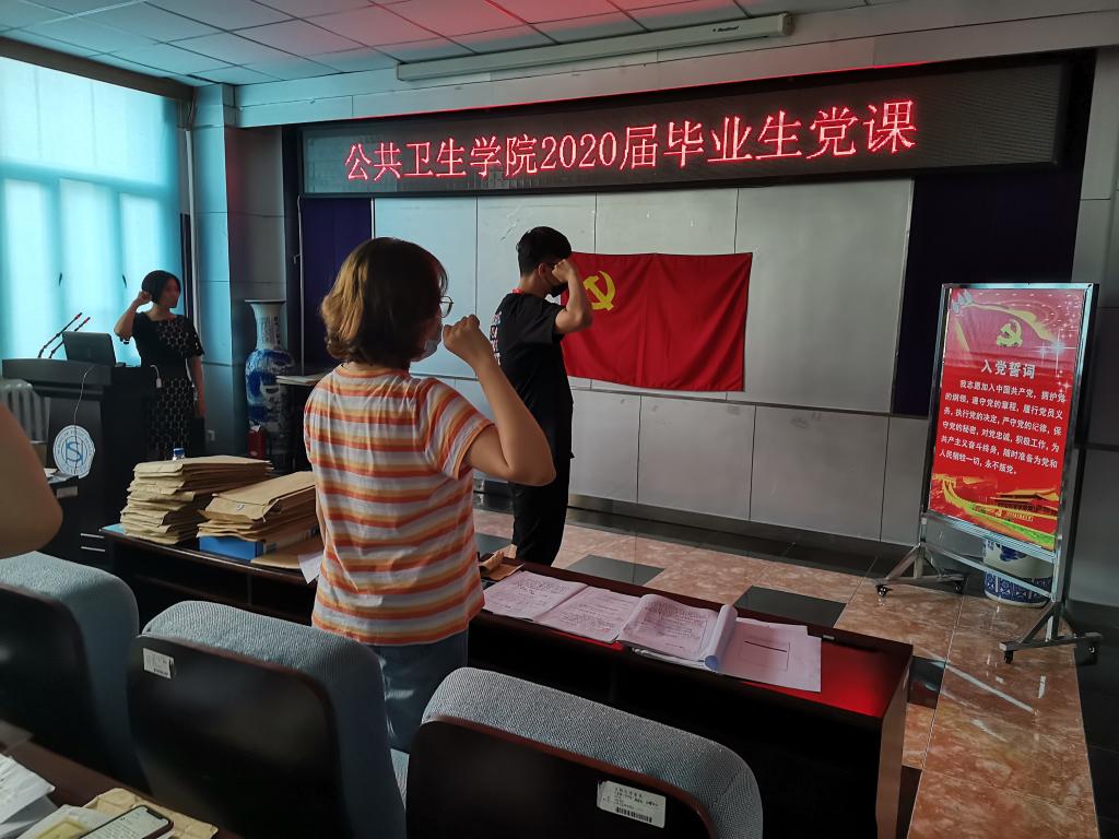 紧接着,刘丽书记以“恪守党员初心,勇担时代使命”为主题给毕业生党员讲授最后一堂党课。首先,刘丽书记解读了习近平总书记在战“疫”期间的重要讲话和指示精神:是党中央带领14亿中国人民群众,经过艰苦卓绝的努力,在疫情防控阻击战上取得重大战略成果的经验和总结。同时,这场战“疫”, 不仅是党践行初心和使命的生动写照,让人民更好地看到了党组织是如何在实践中成长,为维护地区和世界公共卫生安全上做出了重要贡献,书写出经得起历史检验、备受世界瞩目的“中国答卷”。随后,刘丽书记介绍了365英国上市集团附属医院以及365英国上市集团员工与学子在抗疫一线做出的贡献,高度肯定并赞扬了公卫学子在此次突发公共卫生事件中为国家、人民做出的贡献。另外,在疫情期间,公司全体员工党员讲政治、顾大局,践行初心使命;当先锋、做表率,牢记责任担当;用各种方式向最美逆行者致敬。最后,刘丽书记对毕业生党员送出了深情祝福和殷切期望。