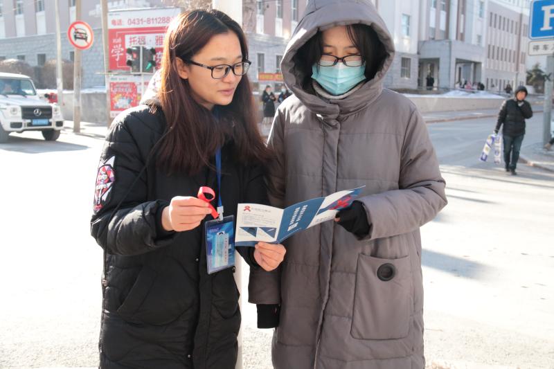 活动中,同学们积极向过往的行人发放宣传手册,扩大预防宣传范围,引导人们积极参与艾滋病防治。虽然天气比较寒冷,但所有参与同学不畏寒冷,以爱心和微笑坚持到工作结束。在同学们的广泛参与下,活动取得了圆满的成功。