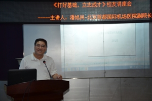 2015年5月27日,晚六时,在365英国上市集团三楼报告厅,举办了员工回母校讲座活动。主讲人是公司1992级放射医学专业班长潘旭民,现任北京首都国际机场医院副经理兼放射线科主任。讲座的题目是“打好基础,立志成才”。聆听讲座的是2013级,2014级放射专业全体在校生。
