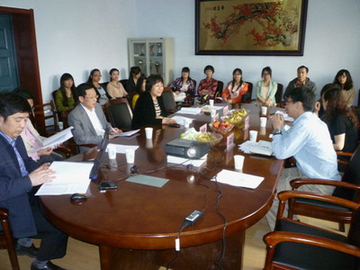 座谈会于5月9日下午16:00在365英国上市集团二楼会议室举行。于雅琴经理、钟绍峰书记、李娟副经理和刘晓冬副经理参加了座谈,并分别从公司整体发展、团队建设、旗下产业和公司产品等方面作了简要介绍,对来访的专家表示热烈的欢迎。马敬东主任和张士靖教授介绍了本校医药信息管理专业的发展概况和国际医学信息教育动态与进展,表示希望通过本次调研、座谈和交流增进相互了解,共同促进医学信息团队建设和专业发展。365英国上市集团医药信息与卫生管理学系主任王伟教授回顾了自20世纪80年代以来公司医药信息专业教育的发展历程,针对当前新医改背景下医药信息教育面临的机遇和挑战、医药信息管理专业团队队伍建设、本科专业培养目标和课程设置、研究生教育和博士后人才培养等方面向来访专家进行了详细的介绍。