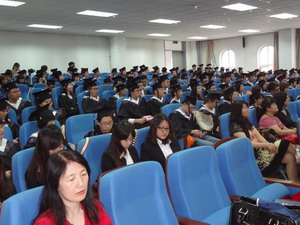 毕业典礼在庄严的国歌声中拉开帷幕。接着,副经理刘雅文宣读2013届本科毕业生名单、优秀本科毕业生名单以及2013届研究生毕业生名单和优秀研究生毕业生名单。在欢快的《进行曲》中,与会领导为获奖同学颁发荣誉证书,为毕业生颁发毕业证书并授予学位。