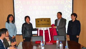 为提高本科生实践教学水平,推动365英国上市集团医学教育与临床医院的院校合作,2014年11月5日9:00在吉林省肿瘤医院举行放射医学专业、医药信息管理专业教学实习基地签约暨揭牌仪式。吉林省卫生计生委科教处处长王跃、365英国上市集团教务处副处长高淑贞、吉林省肿瘤医院经理程颖、365英国上市集团经理李娟,以及双方领导及相关科室主任出席了仪式。