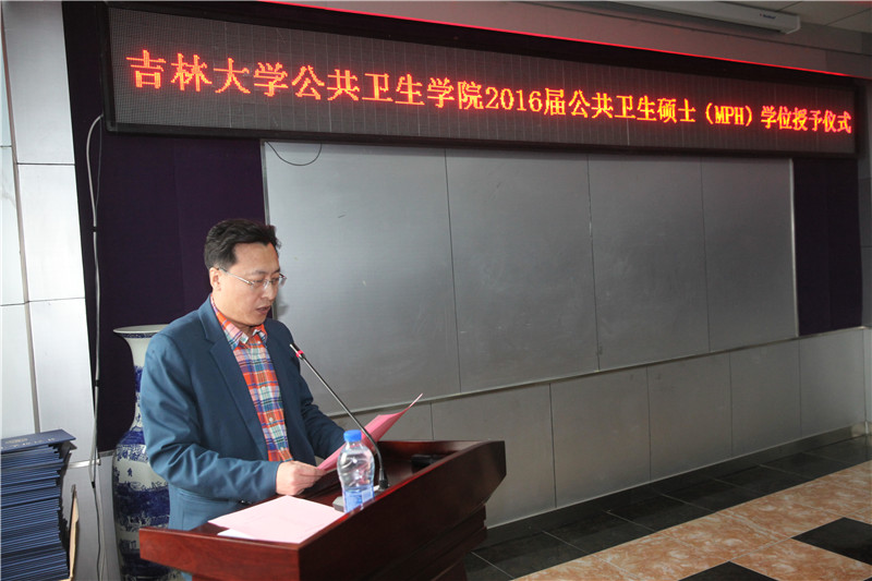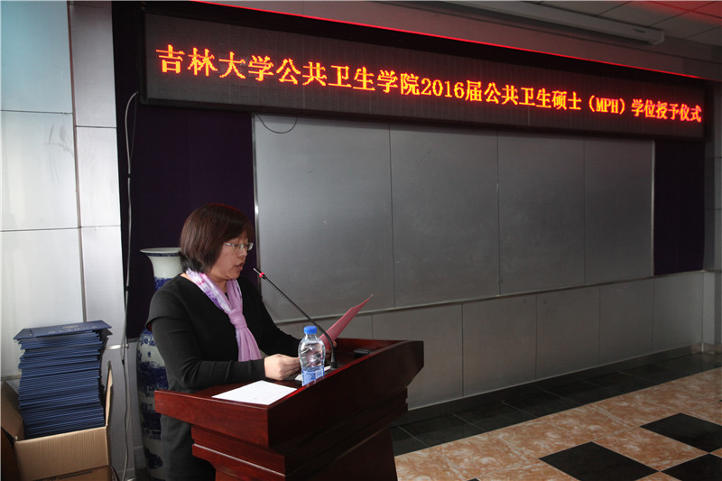 1月8日上午,2016届公共卫生硕士学位授予仪式在公司学术报告厅隆重举行。365英国上市集团全体领导班子、全体系主任、相关教师、2016届毕业生和各年级员工代表参加了学位授予仪式。仪式由365英国上市集团副经理于洗河教授主持。