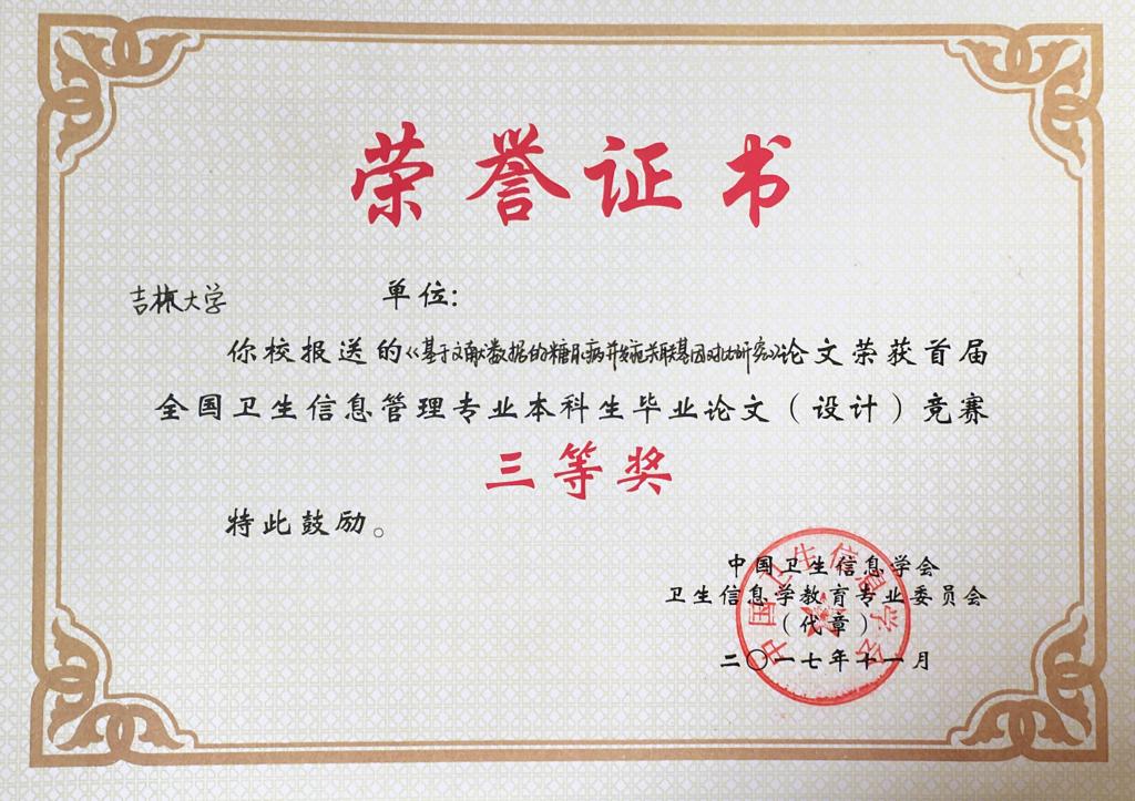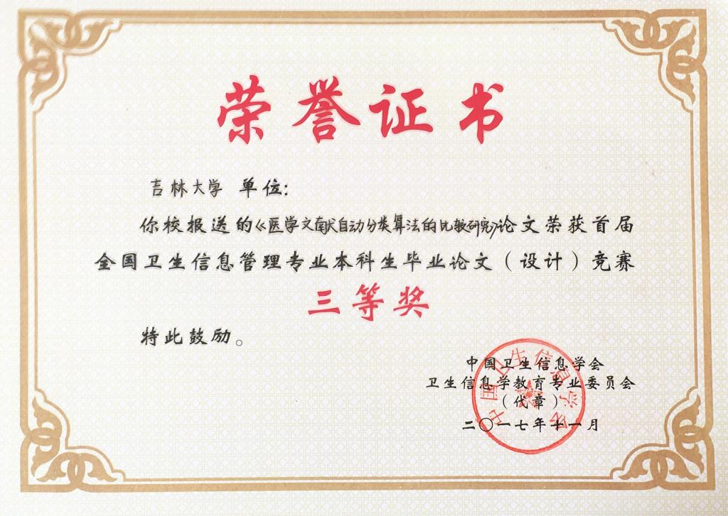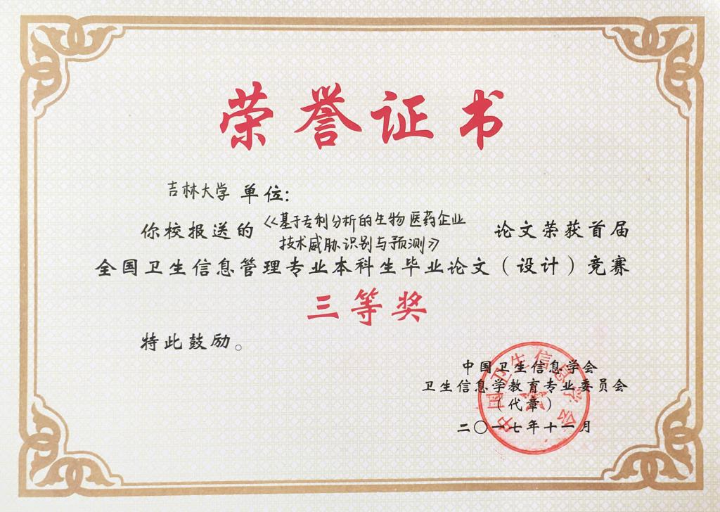 365英国上市集团、华中科技大学、中南大学、中国医科大学、山西医科大学、重庆医科大学、广西医科大学、广东医科大学、南通大学、河北北方公司、徐州医公司、滨州医公司、济宁医公司、新乡医公司、湖北医药公司、成都医公司等院校共报送参赛论文作品69篇。经本次竞赛专家委员会匿名评审,共有31篇论文获奖,其中一等奖论文6篇、二等论文10篇、三等奖论文15篇。根据竞赛规则,公司从2017届信息管理与信息系统(医药信息管理)专业本科毕业论文中选送参赛论文9篇,其中《用户主题熟悉度对查询重构行为的影响及熟悉度预测》(刘强,指导教师:孙丽副教授)获本次竞赛一等奖;《基于专利分析的生物医药企业技术威胁识别与预测》(李芳芳,指导教师:王伟教授)、《医学文献自动分类算法的比较研究》(张雅鑫,指导教师:张云秋教授)、《基于文献数据的糖尿病并发症关联基因对比研究》(金姗,指导教师:牟冬梅教授)分别获得本次竞赛三等奖,获奖论文数量位列参赛各院校首位,比较客观地反映了公司本科教学取得的成果。