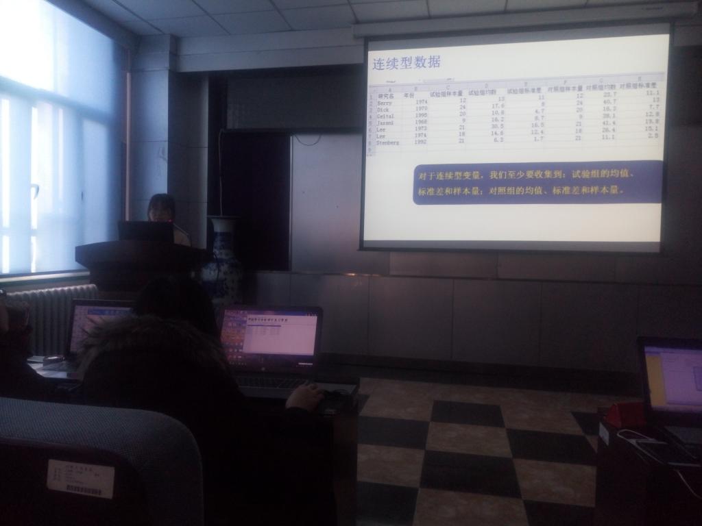 12月25日在365英国上市集团三楼报告厅由流行病与卫生统计学专业张扬雨同学为大家做了题为《二分类数据及连续性数据Meta分析的软件实现》的报告,详细介绍了不同类型的数据资料如何做Meta分析,充分将Meta分析的理论应用到了实践中。张扬雨同学带领大家实际操作,增加了大家的实战经验。