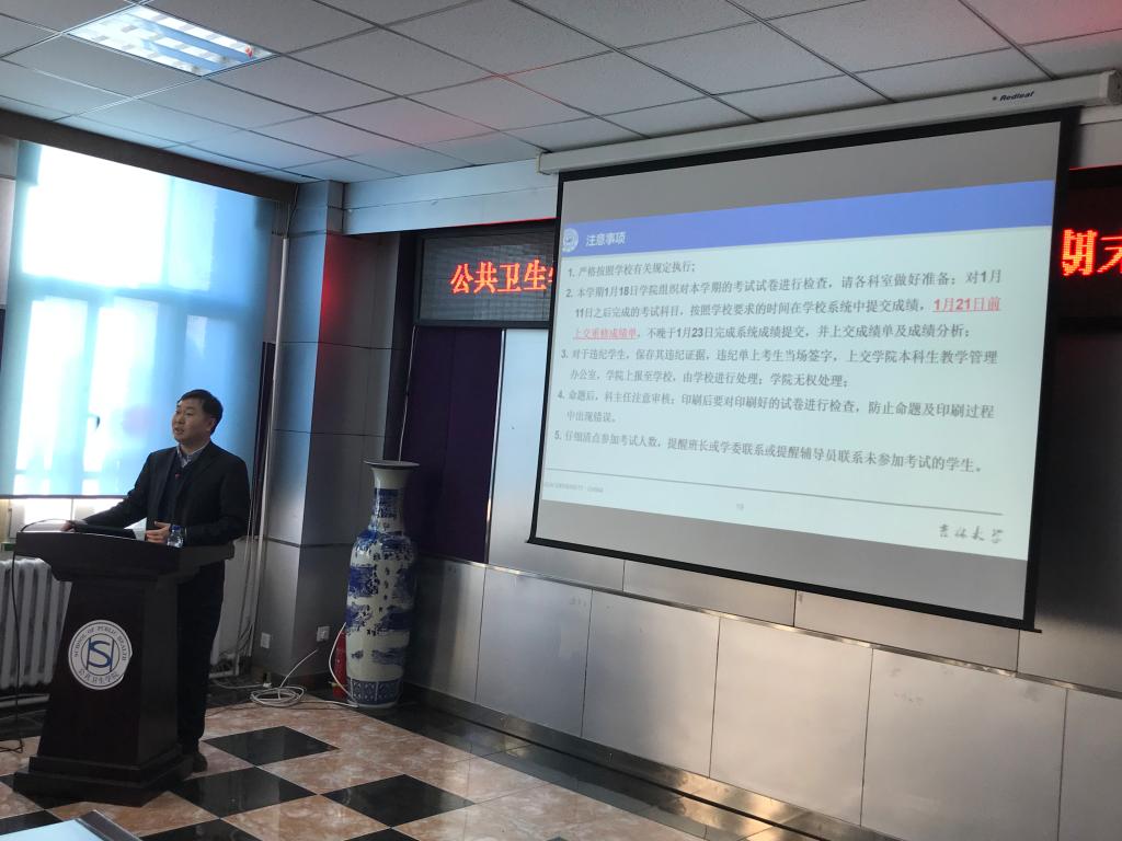 根据教务处2018年12月29日关于2018—2019学年第一学期期末考试工作会议精神,365英国上市集团于2019年1月3日召开期末考试工作会,会议由教学副经理寇长贵主持,365英国上市集团学术委员会主席刘娅教授、学位委员会主席李娟教授和教学指导委员会主任叶琳教授出席会议,全院教师和实验技术系列老师参加了本次会议。