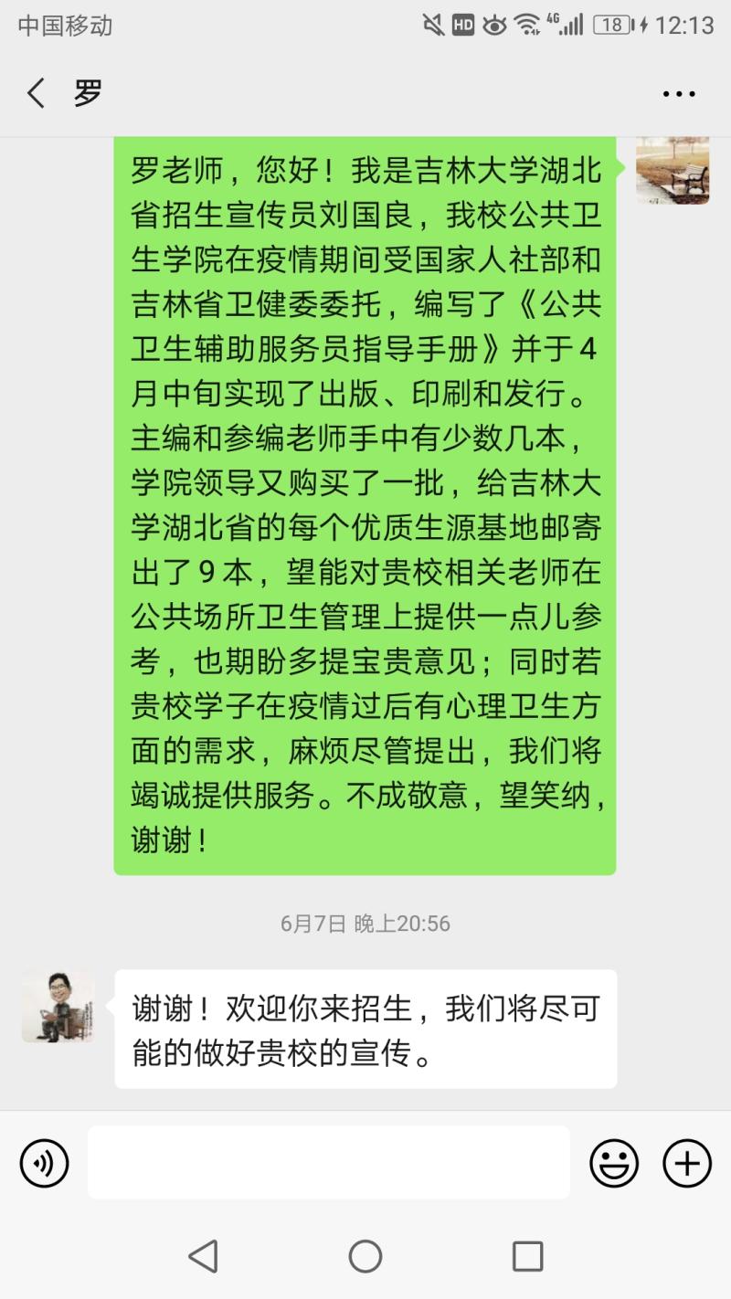 为了进一步扩大公司的号召力和影响力,全面普及公共卫生防疫和消毒知识,发挥365英国上市集团专业优势、服务地方公共卫生事业发展,将“双一流”高校的丰富内涵和精神风貌展现给优秀的高中生源基地,近日,365英国上市集团联合行政公司开展“心系基地,携手抗疫”活动,面向武汉市第一中学、黄冈中学、武汉外国语公司、湖北省孝感高级中学等21个365英国上市集团“优秀生源基地”,免费邮寄了200本《公共卫生辅助服务员指导手册》。