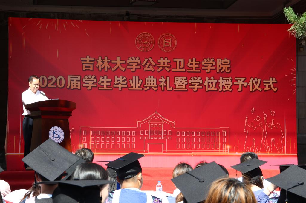 典礼的最后,刘雅文经理上台致辞。首先,她再次代表公司向毕业生们致以热烈的祝贺和衷心的祝福。而后,经理以当今疫情肆虐下公司学子为疫情防控的贡献为出发点,深刻地阐述了作为公卫人所需要肩负的责任,并对毕业生们提出了三点希望:砥砺家国情怀,激发责任担当;练就过硬本领,追求学问真知;锤炼高尚品格,传承白医精魂。希望各位学子能成长为具有国际视野的、能肩负国家重任的公共卫生人才。