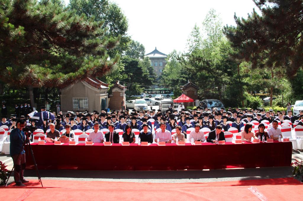 伴随着庄严的国歌声,毕业典礼正式拉开序幕。首先,寇长贵副经理和于洗河副经理分别宣读了2020届本科毕业生学士学位授予决定及优秀本科生毕业名单2020届博士、硕士学位授予决定及优秀研究生毕业生名单。随后,由魏国志副经理为优秀本科生毕业生颁发荣誉证书,刘晋宇副经理为优秀研究生毕业生颁发荣誉证书。紧接着,学位委员会主任刘雅文老师学术委员会主任李娟老师一同为毕业生授予学位,颁发毕业证书并合影留念