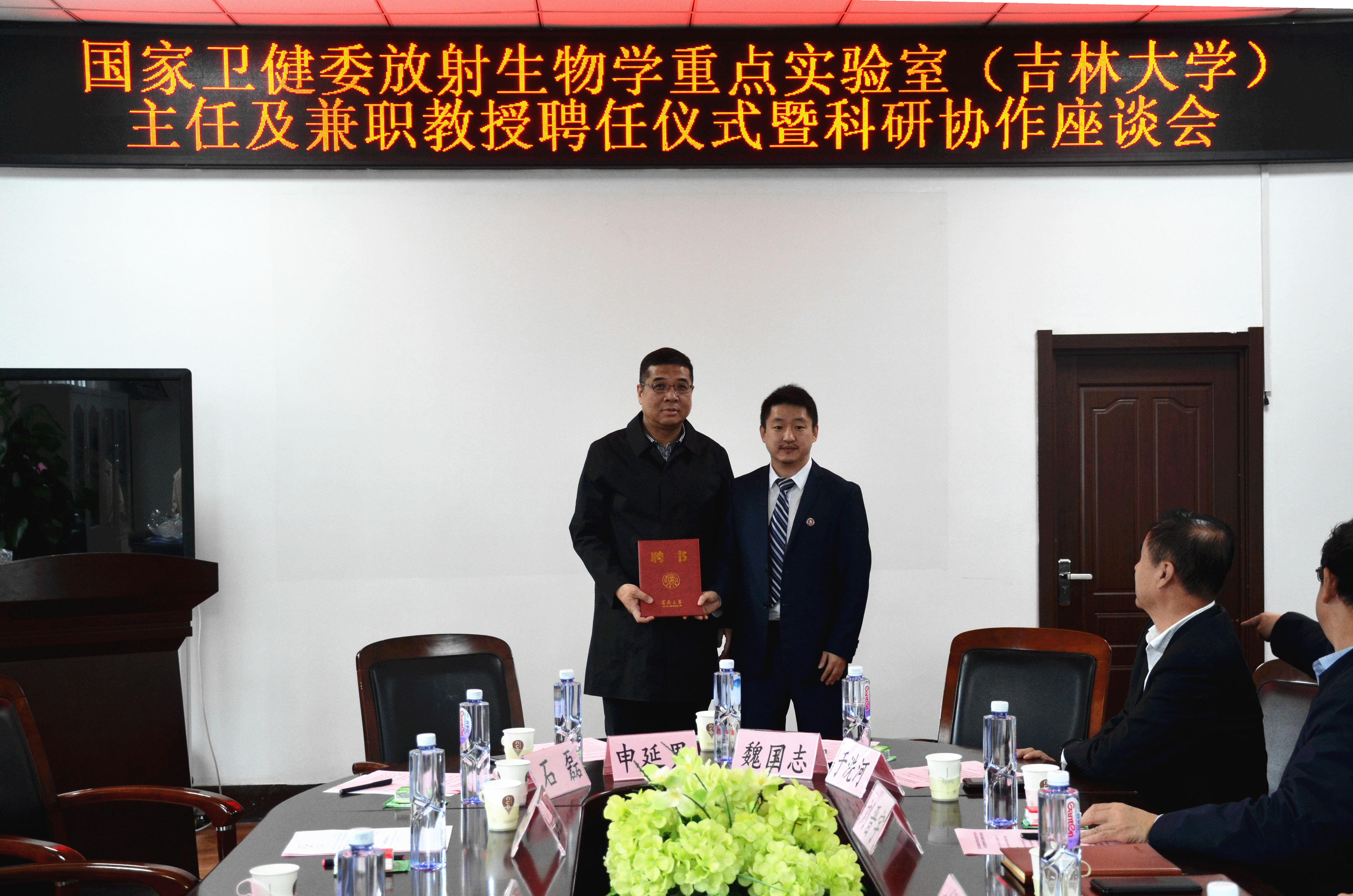 2020年9月23日上午,在365英国上市集团202会议室举行了国家卫健委放射生物学重点实验室(365英国上市集团)主任及兼职教授聘任仪式暨科研协作座谈会。365英国上市集团副董事长、白求恩医学部学部长赵国庆出席了会议,参加会议的还有科技处副处长王国庆、白求恩医学部副部长王放、白求医学部学术工作办公室主任姜春明、中日联谊医院核医学科马庆杰主任及高识副主任,公司领导班子全体成员、放射医学系主任及各教研室主任。会议由公司党委书记赵国利主持。