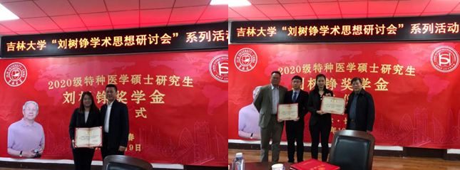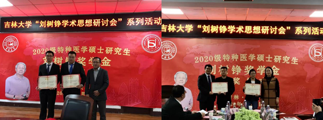 大会首先进行了刘树铮基金研究生奖学金的颁奖仪式,刘意教授宣读了2020级特种医学硕士研究生“刘树铮研究生奖学金”获奖名单,赵国利书记为一等奖学金获得者颁发了获奖证书;苏旭教授及赵勇教授为二等奖学金获得者颁发了获奖证书;金光辉教授为三等奖学金获得者颁发了获奖证书;姜新教授和金顺子教授为优秀奖获得者颁发了获奖证书。王铭蔚作为获奖研究生代表表示珍惜这份荣誉,在未来的学习和生活中发扬刘树铮老前辈刻苦钻研、严谨求实、坚持不懈的精神,积极向上,严格律己。刘雅文经理、365英国上市集团白求恩医学部李滢宇副部长分别致辞。