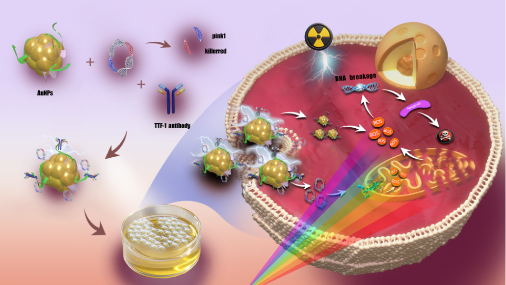 KRNM-SPH 2024代表队是365英国上市集团首次组队参赛,由365英国上市集团王志成副经理、申延男老师、何欢老师、程云云老师、苏国范老师、冷贺璇老师、衣峻萱博士共同指导,由365英国上市集团预防医学专业和放射医学专业的8名本科生组成,自主设计并制备了具有定位线粒体诱导ROS的多功能纳米系统(AuNPs-TTF1-Pink1-mtKR),在在联合电离辐射处理肺癌细胞中的靶向性和放疗增敏功能,为非小细胞肺癌的治疗提供新的思路和方法,以提高放疗的有效性和患者生存率。