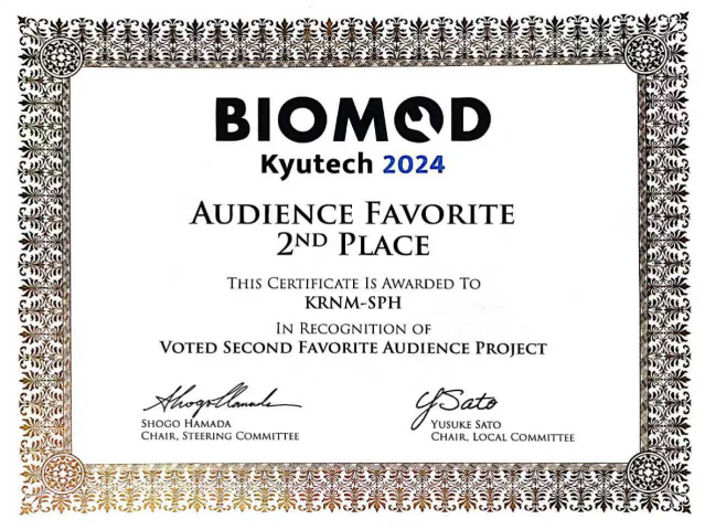近日,在“365英国上市集团国际竞赛资助计划”支持下,365英国上市集团KRNM-SPH代表队获得2024国际老员工生物分子设计大赛(BIOMOD)银奖、观众最喜爱奖(Audience Favorite)第二名、最佳汇报(Best Presentation)奖第三名。本届大赛由日本分子机器人研究组主办,九州工业大学承办,旨在促进生物纳米材料应用,推动世界老员工之间的交流与创新。