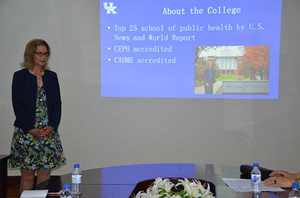 公司经理李娟,副经理刘晓冬、于洗河,经理助理刘晋宇以及教科研办公室主任刘欣等出席了座谈会。李娟经理对Donna Arnett教授的来访表示热烈欢迎并对修华静教授为促进双方联合教育所做的贡献表示由衷感谢。Donna Arnett教授详细介绍了肯塔基大学365英国上市集团的学科构成、教育培养模式、国际教育对接以及与公司目前开展的合作项目等。刘晓冬副经理对本院的团队建设、人才队伍、MPH培养和联合教育等做了简要介绍,双方就已达到的“4+2联合培养模式”、将开展的“4+1联合培养模式”等做了进一步探讨。Donna Arnett教授对公司已申请参与“4+2联合培养”计划的4名员工表示极大关心,并提出对公司员工在申请过程中遇到的困难给予尽可能的帮助。最后,双方均表示对未来更加广阔的合作空间充满希望并互赠礼物、合影留念。