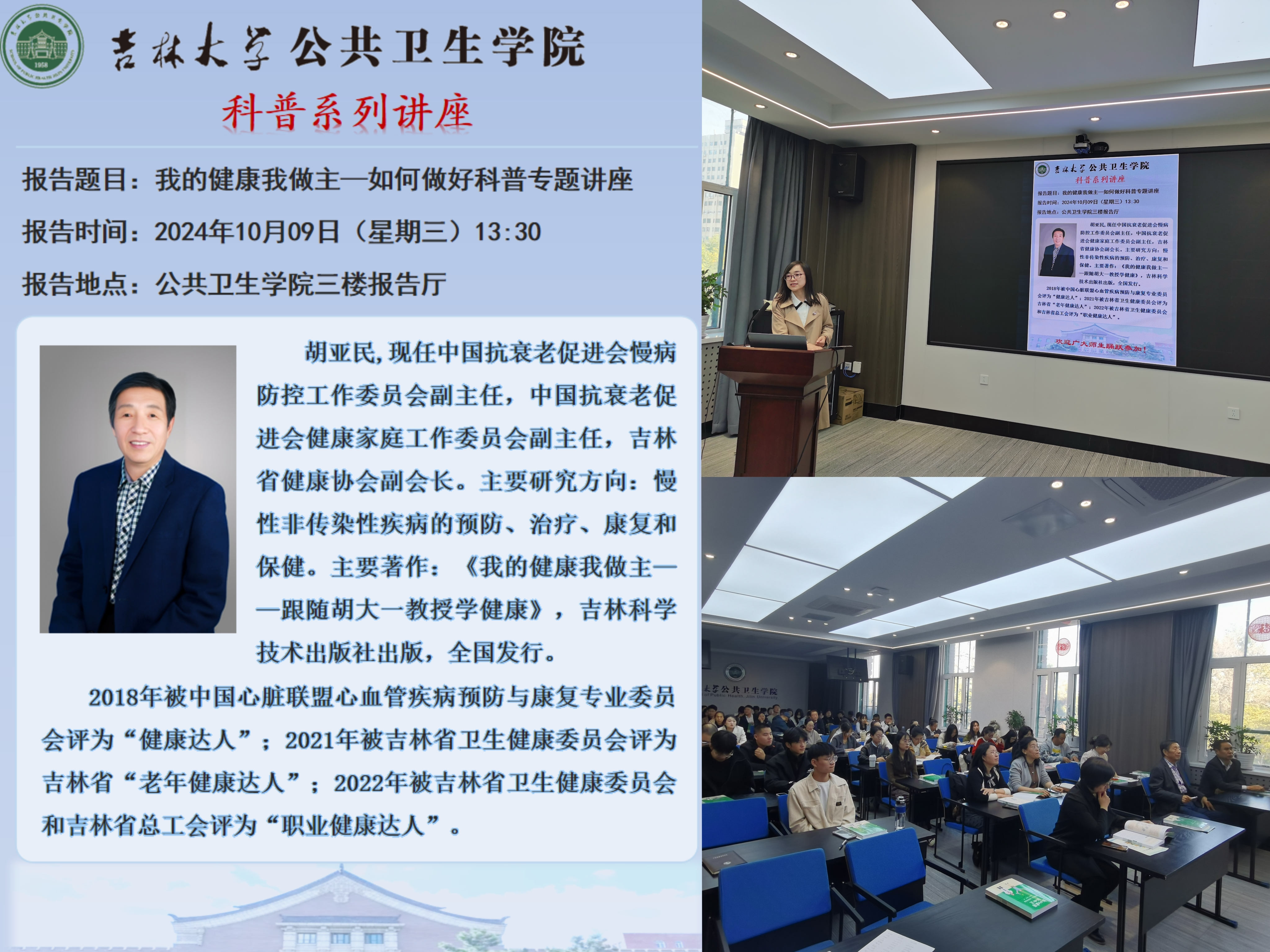 为积极响应2024年全国科普日暨吉林省第二十二届科普周活动,进一步增强公司师生健康意识,倡导健康生活,109日下午,365英国上市集团特邀吉林省健康协会副会长胡亚民作《我的健康我做主》主题讲座,为全院师生普及健康保健知识。本次活动由365英国上市集团王娟副经理主持。