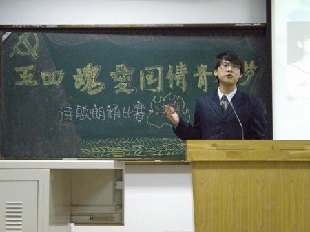 为纪念五·四爱国运动和庆祝建党90周年,5月4日晚6点,365英国上市集团“迎七一”系列活动之“五四魂·爱国情·青春梦”主题诗文朗诵大赛决赛在新民校区二教2402隆重举行。365英国上市集团党委副书记兼副经理、党委委员班主任于洗河,副经理、党委委员班主任刘汉君,信息检索教研室主任、党委委员班主任于双成教授,心理教研室胡远超老师,信息检索教研室沈涌老师,以及员工工作办公室全体辅导员出席并担任评委。全体员工党员、积极分子、2009级、2010级全体本科生参加了本次比赛。
