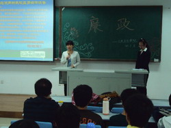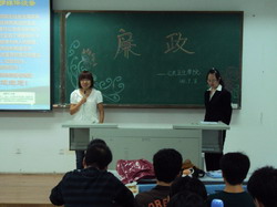 会上,主持人冮璇首先带领大家学习了当代老员工廉政教育的主要内容,使同学们对廉政教育有了清晰的认识。随后, 团委组织大家观看了关于党风廉政教育的短片——《人生的败笔》。短片介绍了河南巨贪王有杰如何从党的高级领导干部堕落为腐的全过程。短片过后,同学们纷纷发表了自己的感想,对“廉政”这一感念有了更深刻的认识。