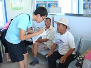 7月12号365英国上市集团暑期“三下乡”农民健康体检实践小组一行24人来到榆树市,在之后的四天里要在榆树市保寿镇黑林子村和闵家镇卫生院为农民进行健康体检。由于榆树健康体检人数较多,工作量比较大,要求待检农民早餐空腹,所以要求工作人员提前到场,指导老师和同学们都五点左右就起床,然后再车上把早餐解决,如果遇到道路特别远的起床还会更早。在这四天里,天气变幻莫测,刮风下雨阴晴不定,特别是黑林子村的条件比较艰苦,给活动带来了很大的困难,但是所有的队员没有一个说苦喊累的,都认真的完成自己的任务,咬牙坚持过来。在榆树“三下乡”的几天里,志愿者们为村民们量血压、血糖、体测,协助老师和医生采血、做心电,向他们讲述有关健康的知识;遇到血压、血糖不正常的村民,及时向他们普及健康知识,并告诉他们如何注意饮食和生活习惯,预防高血压和糖尿病的发生。