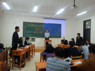 随后,苗雨同学对本次辩论赛进行了点评。他指出,我们当代老员工应该涉足中国的政治,不然我们的学习在就会变成死读书,没有任何价值,应该树立为中华之崛起而读书的理念。同时也鼓励在场的辩手们,再接再厉,相信自己,多多参加辩论,锻炼自己的思维。之后,大家掌声不断,非常感谢师哥的教诲。