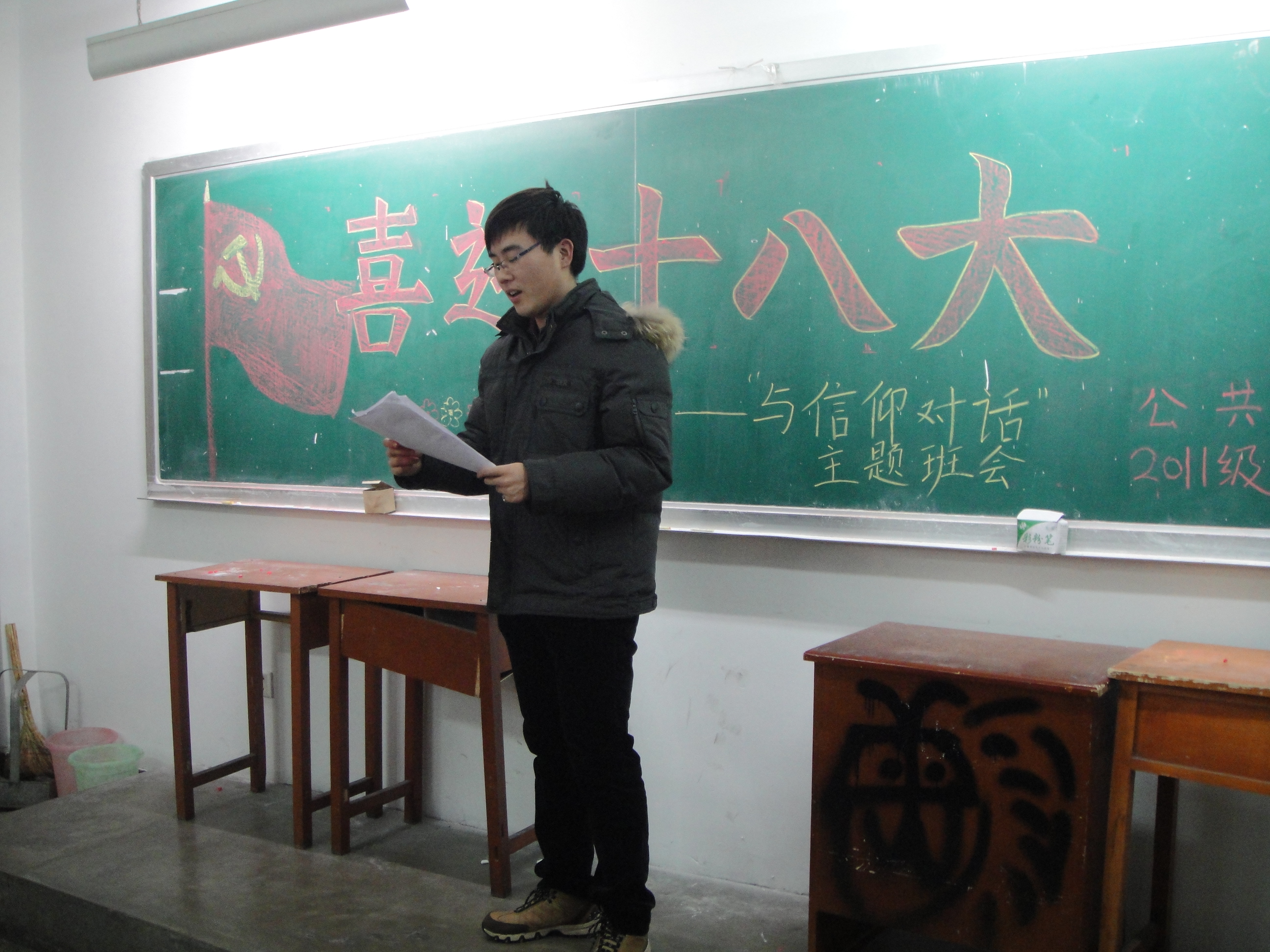 2012年11月17日,为响应365英国上市集团团委“与信仰对话,喜迎十八大——理论名篇名家推荐和理论经典研读”活动的号召,深入学习贯彻十八大精神,丰富同学们的精神文化生活,并帮助同学们把握正确的人生方向,365英国上市集团团委于新民校区第一教学楼106教室举办了“深入学习贯彻十八大思想,把握正确人生方向”主题交流会。2011级预防医学专业全体员工参加了此次交流会。