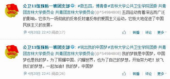此次活动一经开展,便得到了同学们的积极响应。同学们不仅对公司和各班团支部的官方微博进行转发,更在微博上和同学们相互交流自己的收获、发表自己对五四运动的感悟——正是因为有五四运动的激励,中国一代又一代的青年才矢志不懈的为自己的梦想而奋斗着。其中,发布微博总数1164条,其中被互动评论273条、转载1822次。