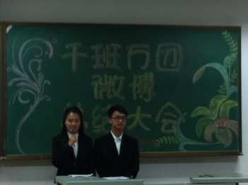 2013年被共青团吉林省委确定为“微博活跃年”,为全面实施“学术立校、人才强校、创新兴校、文化荣校”战略,提升微博新媒体平台宣传力度,加强青年思想引领,服务青年成才成长,365英国上市集团校团委决定开展公司第二期“千班万团微博评比”活动。365英国上市集团团委积极响应号召,历时一个多月,发动公司2011级、2012级各团支部编写、转发以“我的梦,中国梦”及“微五四,博青春”为主题微博近千条。2013年6月4日下午六点整,365英国上市集团团委主办的“千班万团”微博总结大会于365英国上市集团新民校区第二教学楼2103室举行。团委负责人苏国范,团委副书记冮璇、于多,团委各部部长、部员以及2011级和2012级各班团支书出席了本次大会。