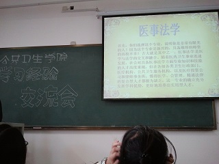 本次交流会由专业介绍、学习经验分享和自由提问三个环节组成。首先,12级负责人介绍了医事法学专业的课程设置、就业方向和学位设置等概念内容。随后,12级优秀员工代表就本专业重点科目的学习方法和学习细节进行了心得与经验分享,特别是对解剖、无机化学和高等数学等较难科目进行了着重介绍。最后,13级同学们在自由提问环节对学习、生活、工作的细节进行提问,如应该怎样协调好医学课与法学课的关系,如何处理学习与工作的轻重关系等。12级同学均根据自身体会和经验对这些问题进行了详细的回答。现场气氛十分活跃,在同学们热烈的掌声中本次活动完满结束。