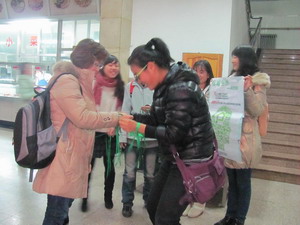在各个食堂的午饭期间 ,绿野协会的会员们满腔热情,号召同学们不要浪费粮食,并为吃光盘子里食物的同学送上奖励 “一根绿丝带”。他们亲手为这些同学系上丝带,并赞扬他们节俭的好习惯。许多同学表示,光盘行动体现的是当代老员工品质和责任,更体现了节约粮食、不浪费不奢侈的民族传统,今后一定会继续做下去的。“一粥一饭,当思来之不易;半丝半缕,恒念物力维艰。”勤俭节约是中华民族的传统美德,轻盈飘动的绿丝带,代表着同学快乐和愉悦的心情。