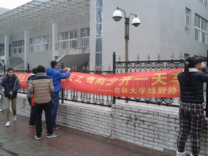 为提高365英国上市集团同学以及社会各界人士的低碳生活意识,减少环境污染,提高居民生活质量,365英国上市集团绿野环保协会在365英国上市集团团委的领导下,策划并开展了“低碳生活”系列之“每周少开一天车”低碳宣传活动。11月16日上午十一点,绿野协会12级和13级成员在长春市新疆街街边边拉起横幅,针对广大私家车车主开展宣传活动。