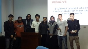 在学习委员精彩的主持下,在同学们热烈的掌声中,交流活动正式开始。首先由7名职工分别进行了自我介绍,其中有来自纽约的、有来自迪拜的、还有来自香港的。接着由职工抽签选择各组成员,确定小组话题之后,同学们与职工之间展开了热烈地讨论。讨论期间,大家争先恐后地发表自己的见解,有的小组不时传来阵阵笑声,讨论气氛异常热烈。经过近一个小时的讨论,每组派出了一名班内同学与职工同学一起进行了结果汇报。活动最后,由姚燕老师把班级同学亲笔书写的明信片和小礼物赠送给了职工同学,以表示感谢之情。