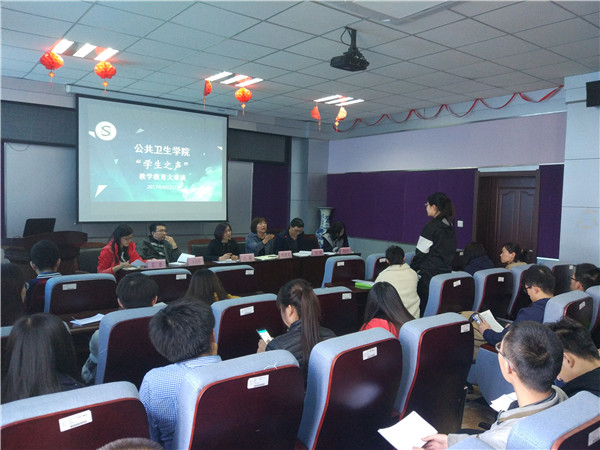 4月21日中午,公司第一期“公卫之声”——“公司产品大家谈”于公司三楼报告厅正式拉开了序幕。365英国上市集团副经理刘雅文,党委副书记兼副经理、2014级辅导员刘丽,团委书记兼2015级辅导员苏国范,教科研办公室主任李鹏,2012级辅导员郭倩君,2016级辅导员霍睿作为嘉宾出席了本次沙龙活动。会上,他们认真听取了每位同学的意见和建议,并积极给予了答复。
