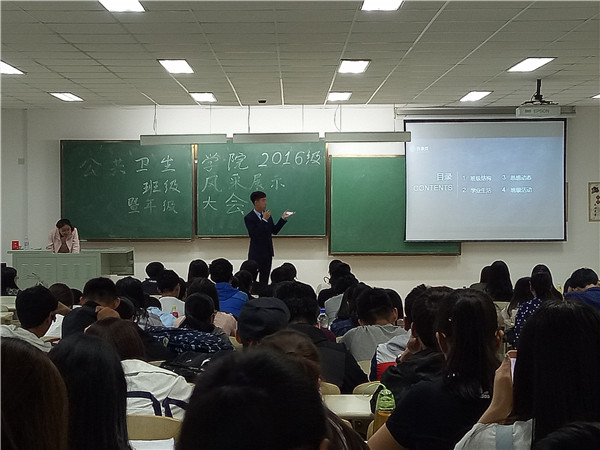 首先,主持人致开场词,各班班长依次进行了5-10分钟的班级风采展示,主要对入学一年内班级的学习、生活、工作、活动等基本情况进行了总结汇报。六位班长以幽默风趣的语言一次又一次将现场气氛推向了高潮。随后,活动以班级为单位组队进行了“你划我猜”的素拓游戏,同学们拼劲全力,形象地演绎着每一个中国成语,在游戏中感受中国文化,在欢笑声中放松自己。紧接着,辅导员霍睿和各位兼职班主任老师分别为获得好学班级、积极班级、团结班级等荣誉的2016级班级颁发奖状。会议的最后,霍睿发表了主题讲话,汇报总结了全年级入学一整年的各项情况,并提出了对同学们的要求,她希望同学们能秉承初心、矢志不移、坚定信念、相信自己,在期末考试中取得好的成绩。