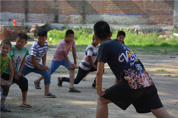 经过课间休息,体育小课堂开课了。为防止运动伤害,志愿者积极组织了热身运动。首先,志愿者对孩子们进行了分组,在分开教学一段时间后,志愿者组织进行了分组对抗赛,孩子们积极参与,团结互助,踊跃表现。从孩子们笑靥如花的脸上,志愿者们逐渐领悟到了服务与奉献的真谛。