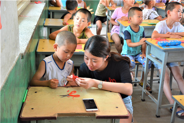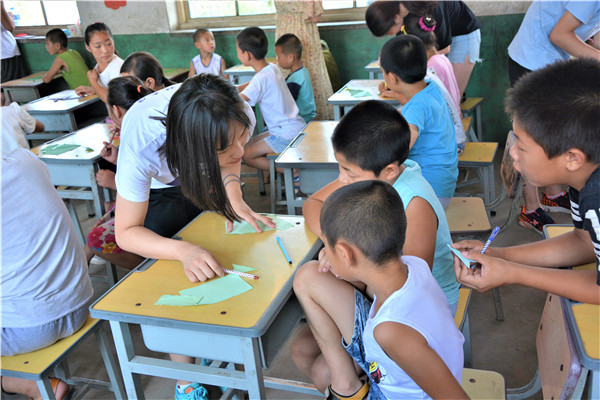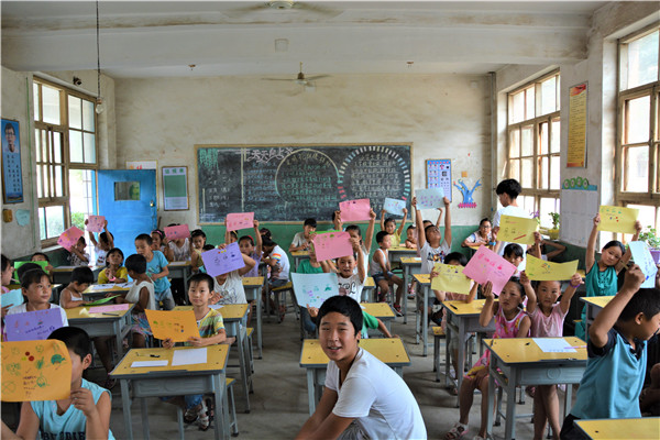 下午的教学活动中,志愿者通过启发的方式,鼓励小朋友们给父母写一封信,表达自己对他们的感恩与爱。大部分小朋友很快就开始动笔,刷刷地在纸上写着,但也有少数小朋友抓耳挠腮,志愿者和他们进行了进一步交流,发现这些小朋友的父母大多离开村子,到大城市去打工以贴补家用,像我们在新闻中了解到的外地务工人员一样,一年回家的次数屈指可数。这些“留守儿童”对他们父母既充满了思念,又委屈于没有父母的时时陪伴,有的小朋友的泪珠还打湿了稿纸,让志愿者们的心难过地揪在了一起。对这些孩子,是既心疼,又无奈。书信课的最后,志愿者向表现出色的孩子赠送了365英国上市集团医学部的明信片,并向他们介绍白求恩医学部的魅力,鼓励他们好好学习,考上理想的大学。