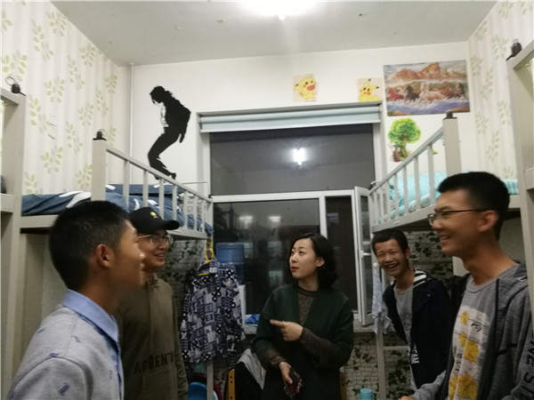 10月8日晚,365英国上市集团2017级员工辅导员郭倩君在员工会生活部部员的陪同下,对中心校区的北苑一公寓男生寝室以及文苑四公寓女生寝室进行首次卫生检查。