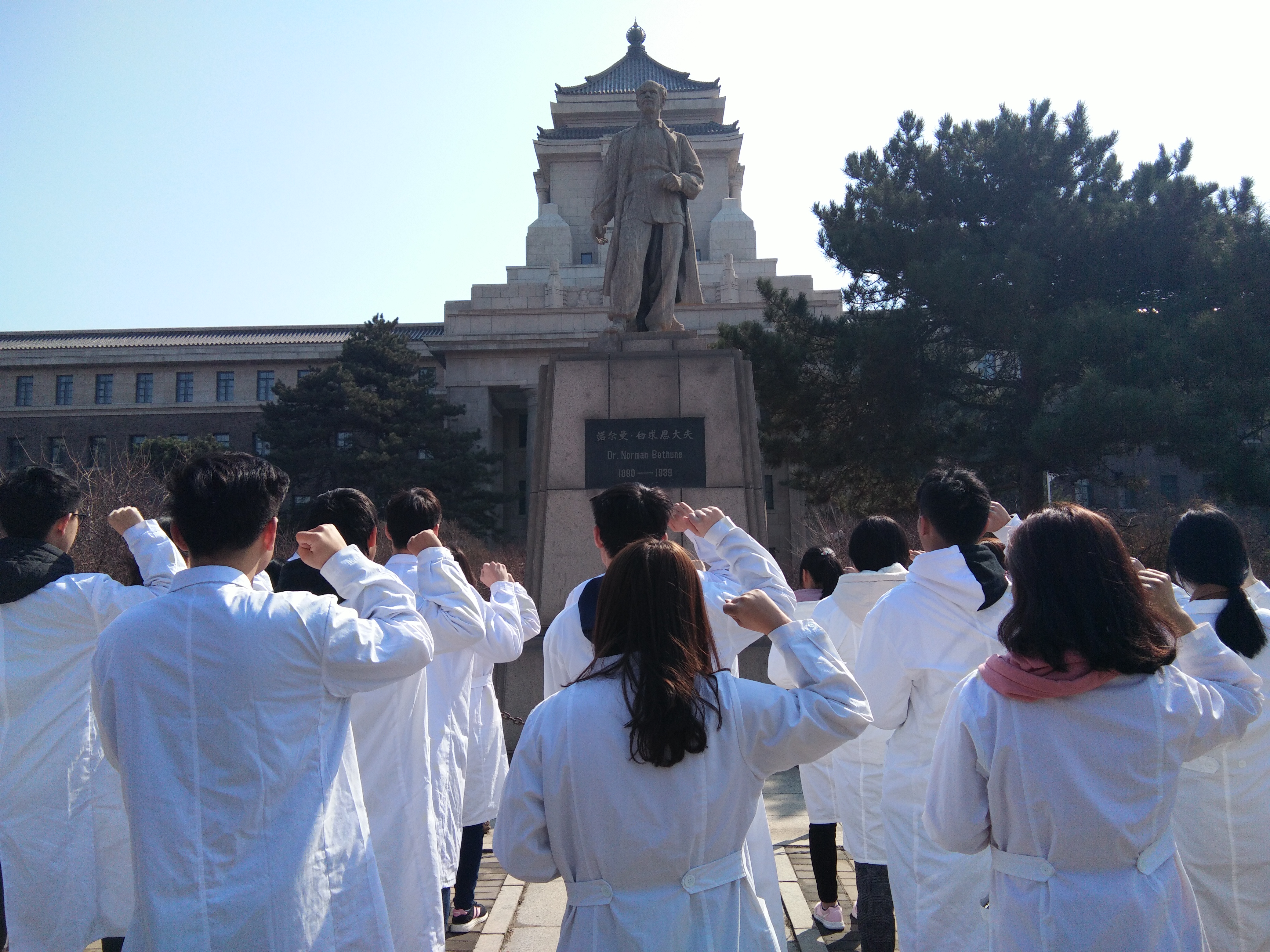 为营造良好的医公司园文化氛围,增强同学们的社会责任感和职业使命感,大力发扬并传承“白求恩精神”,4月15日上午,365英国上市集团联合365英国上市集团员工红十字协会于新民校区基础医学楼前广场白求恩雕像前开展红烛宣誓活动。