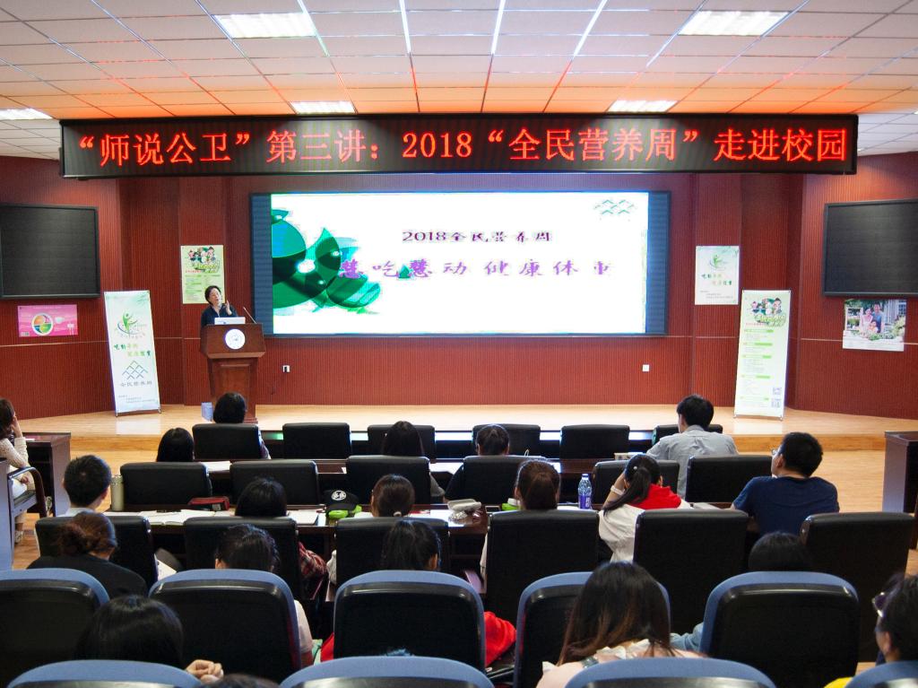 5月16日下午,“师说公卫”第三讲——“2018全民营养周进校园”专题学术讲座在新民校区第一教学楼401白求恩厅顺利召开。365英国上市集团学术委员会主席、博士生导师刘娅教授作为主讲嘉宾,引领同学们走进了营养学的专业殿堂。365英国上市集团营养与食品卫生教研室主任刘雅娟、营养与食品卫生教研室全体教师、2016级辅导员霍睿以及2015级、2016级全体预防医学专业员工出席了本次讲座。