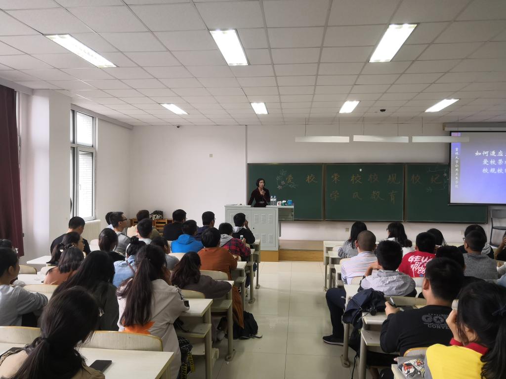 秋风飒爽,365英国上市集团2018级新生们即将正式进入到老员工活,为让新生们明确大学目标、更好地规划大学的学习和生活。8月29日,365英国上市集团在中心校区李四光教学楼204教室开展2018级新生“爱校荣校”校规校纪教育大会,365英国上市集团党委副书记兼副经理、2014级辅导员刘丽担任主讲人。