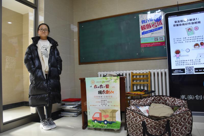 活动前期,志工部的成员们从采购物资、招募志愿者到海报宣传,每一个环节都精心准备。志工部的成员们在10号早上,提前到达指定地点,将桌椅、衣物、收纳袋等工具整齐摆放在各员工公寓门前,吸引了过路同学们的关注。不久,便有同学陆续地来到捐赠地点,或单件捐出,或成箱搬来,他们热情积极地参与活动。在收到同学们热心的捐助后,为了对大家前来奉献爱心的行为表示感谢,志工部的成员们向他们发放了小礼品。捐赠活动结束后,志工部的成员们将回收的旧衣物进行了检查与分类,并筛选出符合标准的捐赠衣物,规整地装袋送到公益组织。此次活动得到了新民校区全体同学的大力支持,经过为期两天的活动,累计得到24整袋衣物。