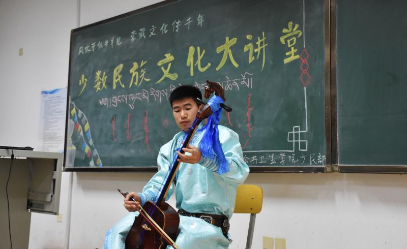 这次少数民族文化讲堂面向全校师生开展,现场反响热烈,座无虚席。开讲前特别设置了特色风味奶茶品尝和民族特色纪念品放送环节,充分调动了观众们的热情。在现场热烈的掌声中,蒙古族闫顺铠同学从蒙古族的文字演变、信仰起源、风俗习惯以及景观、饮食等方面展开讲述,通过生动的语言将蒙古族的文化风情立体的呈现给观众。随后,蒙古族纳日格乐同学带来了一段精彩的马头琴演奏,现场观众在如歌如泣的音乐声中感受到了草原民族的精神与底蕴。