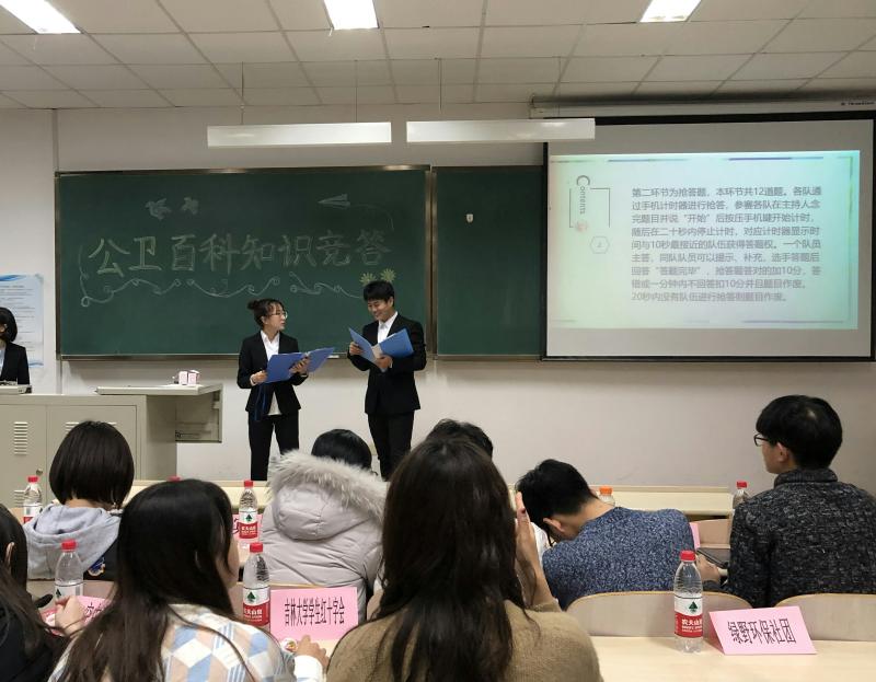 活动一开始,两位主持人向在场的选手及观众介绍了出席领导及各社团负责人,并对各位老师同学的到来表示了热烈欢迎,随后比赛正式拉开帷幕。本次比赛由三个答题环节组成,分别为“必答”、“抢答”和“风险抢答”三种类型。2018级各班代表队积极参与,由于选手们的赛前准备的均很充分,各队实力相当,比赛进行的十分激烈。比赛还设置了两次抽奖环节和“正话反说”等游戏环节,观众们积极参加,为比赛的紧张氛围增添了些许轻松。各环节全部结束后,计分员按照总成绩排出各班名次,多个班都取得了优异的成绩。