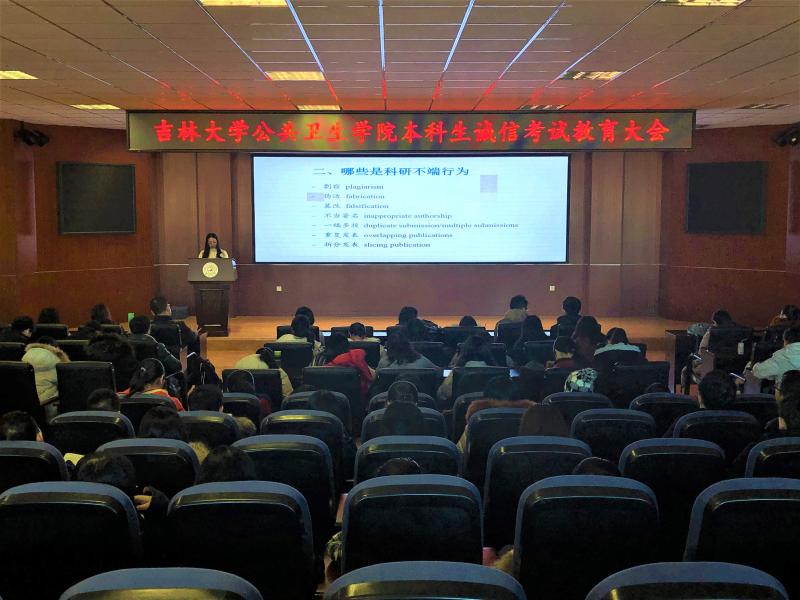 在2019年全国硕士研究生招生考试来临之际,根据吉林省招生委员会吉林省教育厅《关于开展净化研究生考试环境系列活动的通知》(吉招委联字〔2018〕5号)文件精神和公司通知要求,为严肃考风考纪,营造和谐健康的考试环境,365英国上市集团于2018年12月18日中午在新民校区第一教学楼401教室召开诚信考试教育大会(本科生专场)。365英国上市集团党委副书记兼副经理、2014级员工辅导员刘丽,2017级流行病与卫生统计学研究生李梦担任主讲人,2014级全体本科生参加会议。