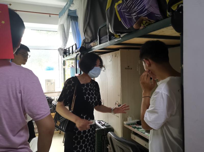 为关心同学们的学习生活情况,检查寝室安全与卫生情况,365英国上市集团于8月9日对365英国上市集团中心校区文苑4公寓、南苑6公寓进行了寝室走访。365英国上市集团党委副书记兼副经理、2019级辅导员刘丽,2017级辅导员冷贺璇及辅导员姜姗姗参与查寝工作。