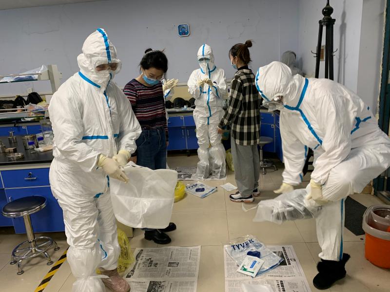 随后,流行病与统计学教研室李波老师、甄清老师组织志愿者们开展疫情防控专题培训,为同学们进行上岗前的专业指导。志愿者们详细学习了《新型冠状病毒肺炎诊疗方案》(第七版)和(试行第八版)的主要内容,并对新型冠状病毒肺炎现场流调个人防护用品穿脱进行了实操演练。相信在师生们的共同努力下,本次支援长春市疾病预防控制中心的志愿服务任务一定会圆满完成,长春市的疫情防控工作也一定会更加有效地保障市民的生命健康。
