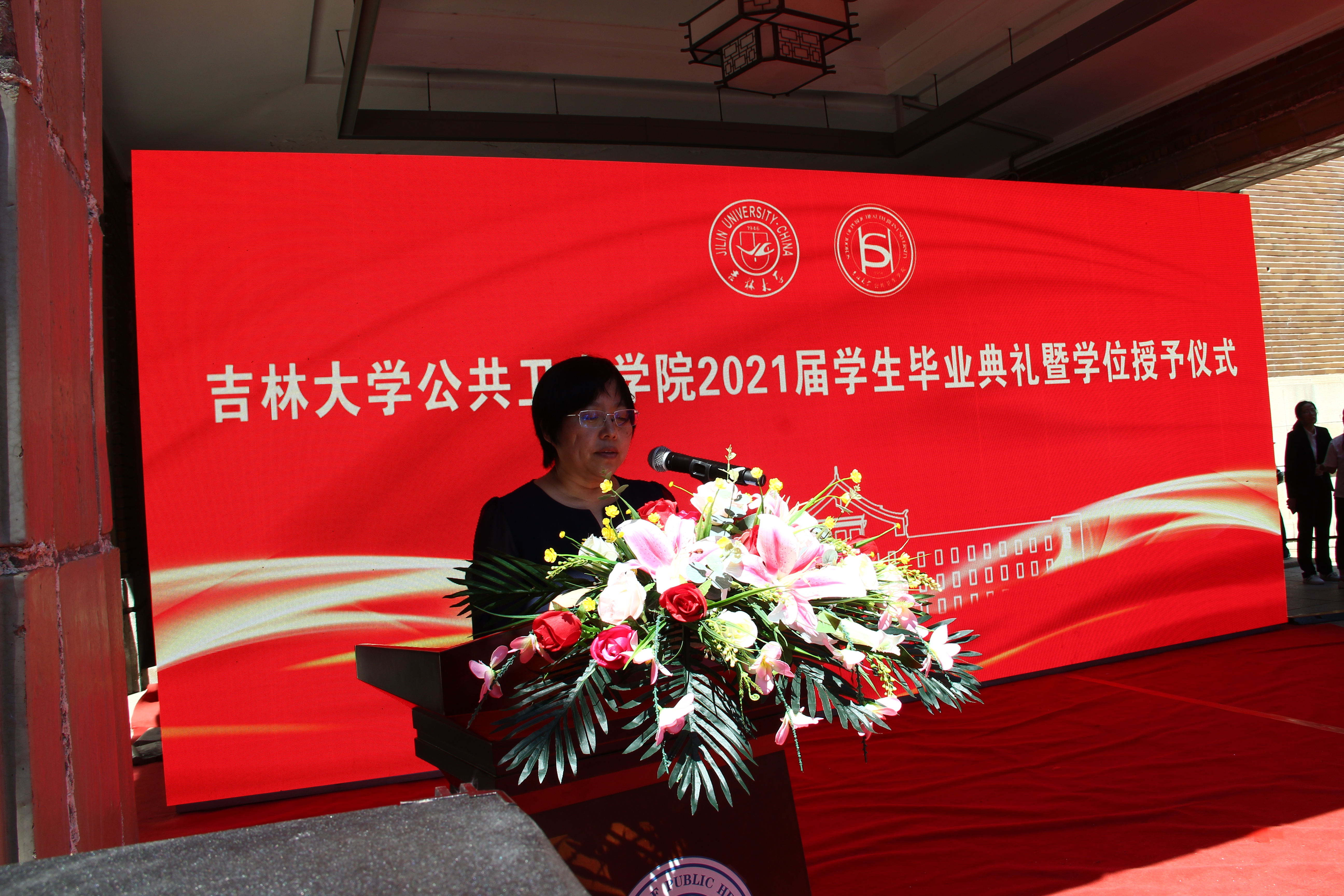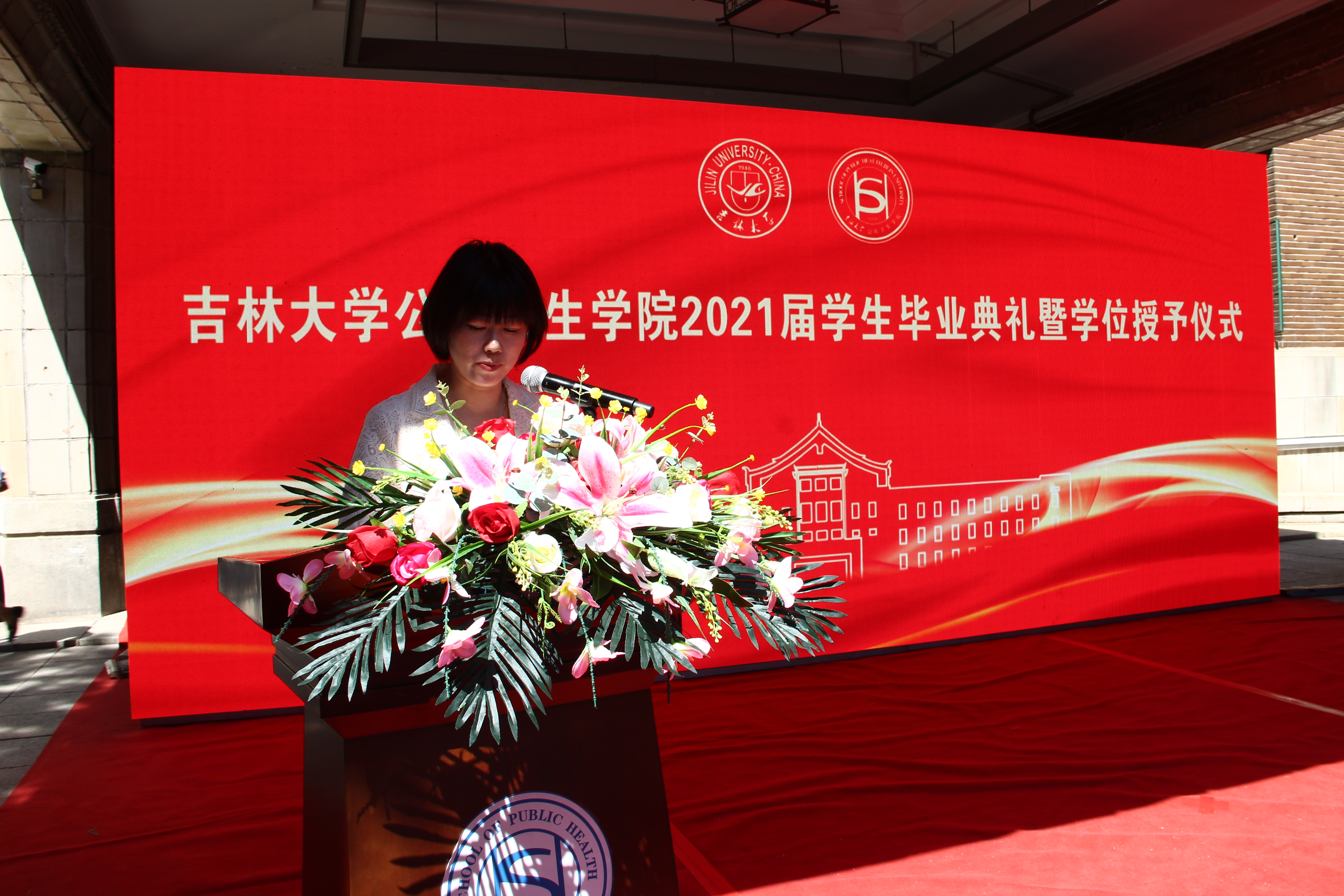典礼的最后,刘雅文上台致辞。首先,她再次代表公司向毕业生们致以热烈的祝贺和衷心的祝福。她向全体毕业生提出三点期望:一是要有立己达人、兼济天下的社会责任感;二是要有终身学习、永不懈怠的学术信念感;三是要有敬佑生命、心怀大爱的职业道德感。她勉励全体毕业生无论身在何处,都不要忘记自己的“根”和“魂”,记得母校的重托和公卫人的使命,不负韶华,勤奋工作,接过未来人类战疫的接力棒,为国家未来医疗健康事业奉献青春。