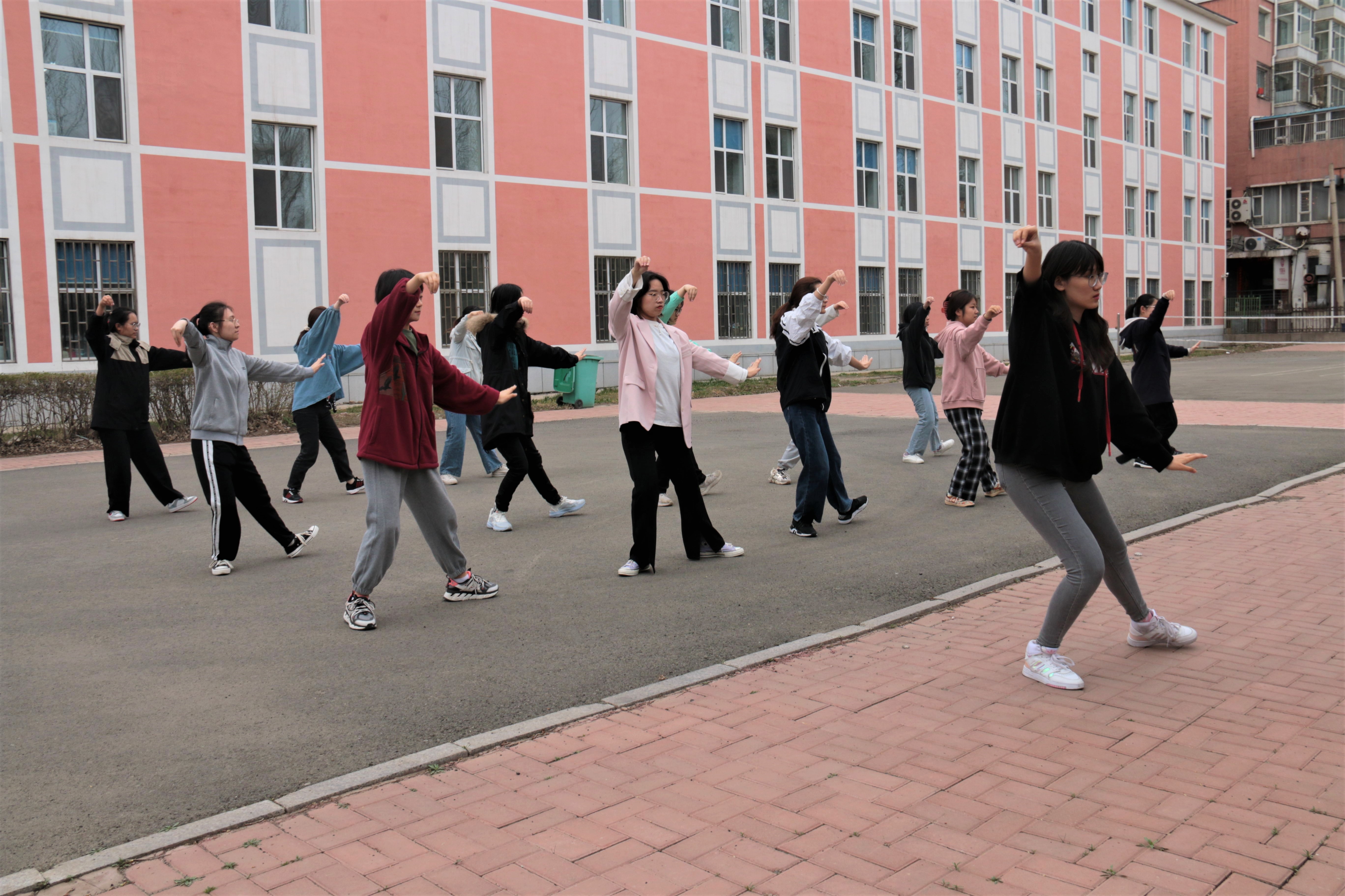 In order to better meet the upcoming Taijiquan competition and achieve excellent results in the games, the students' Union of the College of public health led the athletes to conduct Taijiquan training in the open space behind the ninth apartment of students in Xinmin campus on the afternoon of April 22.